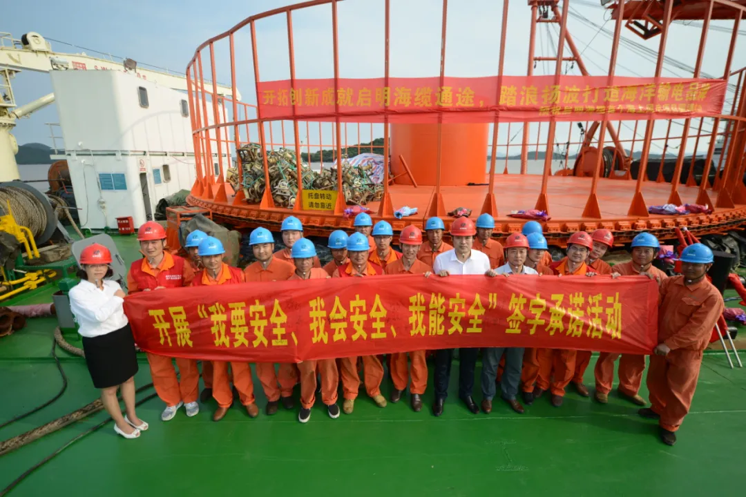 浙江启明海缆施工项目部在国内海缆施工市场始终处于领先优势,是国网公司海洋输电建设的一张“金名片”。团队深入推进《海缆施工关键技术和装备》项目,加快打造多功能辅助船、专业检修船、海缆敷设船和大型远洋海缆施工船。2019年国内首制5000吨新型海底电缆施工船正式投入使用,能使220千伏电压等级海缆施工长度由原来的30公里提升至60公里,其先进装备满足60名施工人员60天的连续施工作业,使得团队提升了具备承接海洋输电、国内海上风电等大截面、长距离海底电缆工程的能力。同时还积极开发海缆深埋、水下机器人、水喷式埋设犁等高新技术装备的研制与应用,始终保持海缆施工领军地位。