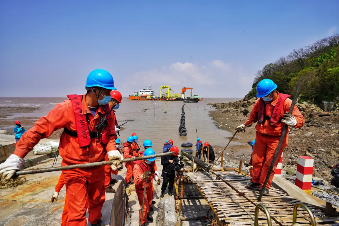 ) r5 s6 s/ V/ N M; i 舟山特殊的群岛地理环境决定海缆是电网的生命线。海缆施工项目部在全国劳模丁兆冈带领下,近年来完成世界首个五端柔性直流示范工程、浙江省第一个海上风电国电舟山普陀6号海上风电场2区工程海缆工程、220千伏鱼山输电线路工程、世界首个500千伏交联聚乙烯海底电缆工程等。其中舟山500千伏联网海底电缆敷设工程为国家电网有限公司建设规模最大、技术难度最高的跨海电网工程,为“一带一路”重要战略支点提供更为可靠的能源保障,是国家海洋输电技术在东海之畔的一次集中展现。舟山至鱼山220千伏输电线路海底电缆敷设工程极大地保障绿色石化基地建设、运行,满足了“一带一路”建设新形势下舟山群岛新区经济增长用电需求,成为了全国海岛电网施工和运维的示范,全面助推舟山新能源电力发展升级、加快绿色电力生产与应用。 * `6 b! u; E3 o" j