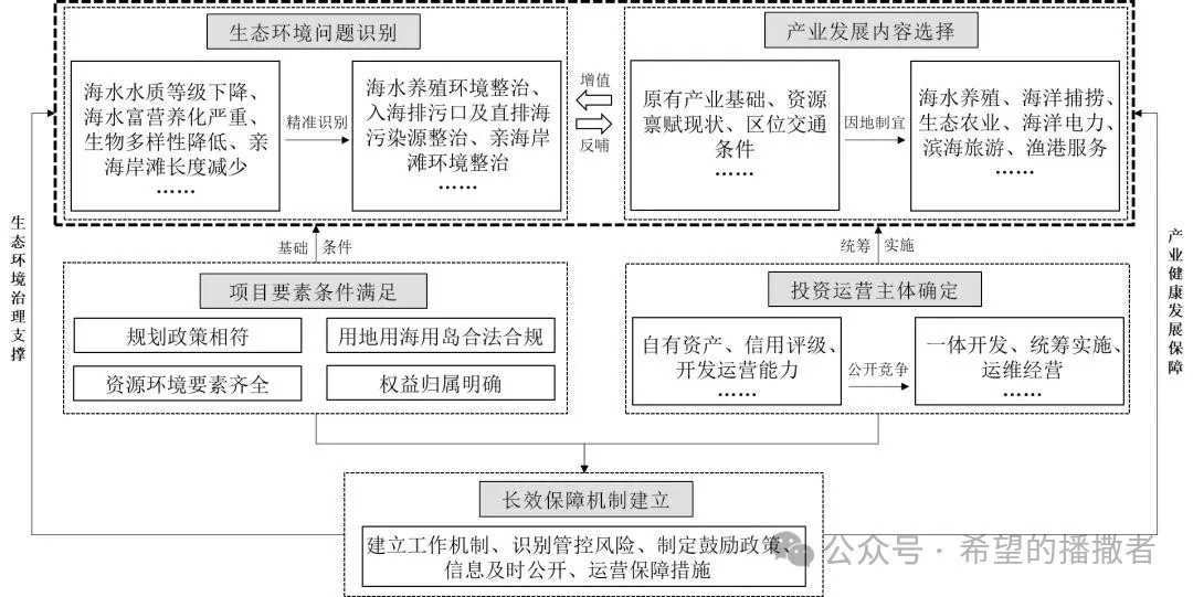 除了找准问题、选好产业,近岸海域环境整治EOD项目还应从投资运营主体筛选、相关权益要素保障、长效保障机制建立等方面统筹考虑。