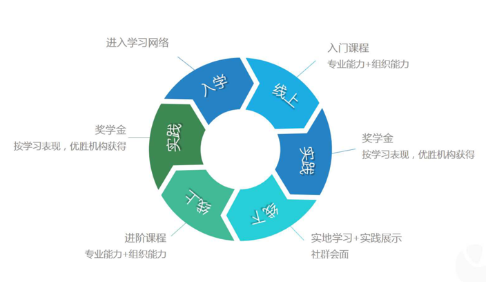 招募入学——学习——实践——学习——升级, ! ?* X) P# y; F% O8 R$ l& {