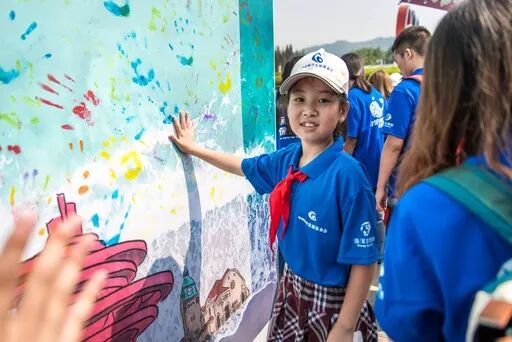 山东省青岛市的志愿者在宣誓墙上印下小手印,表达履行诺言的决心。 8 o, M8 t0 n- v- |