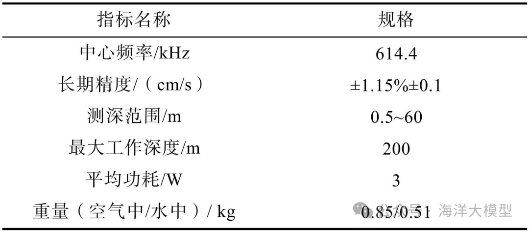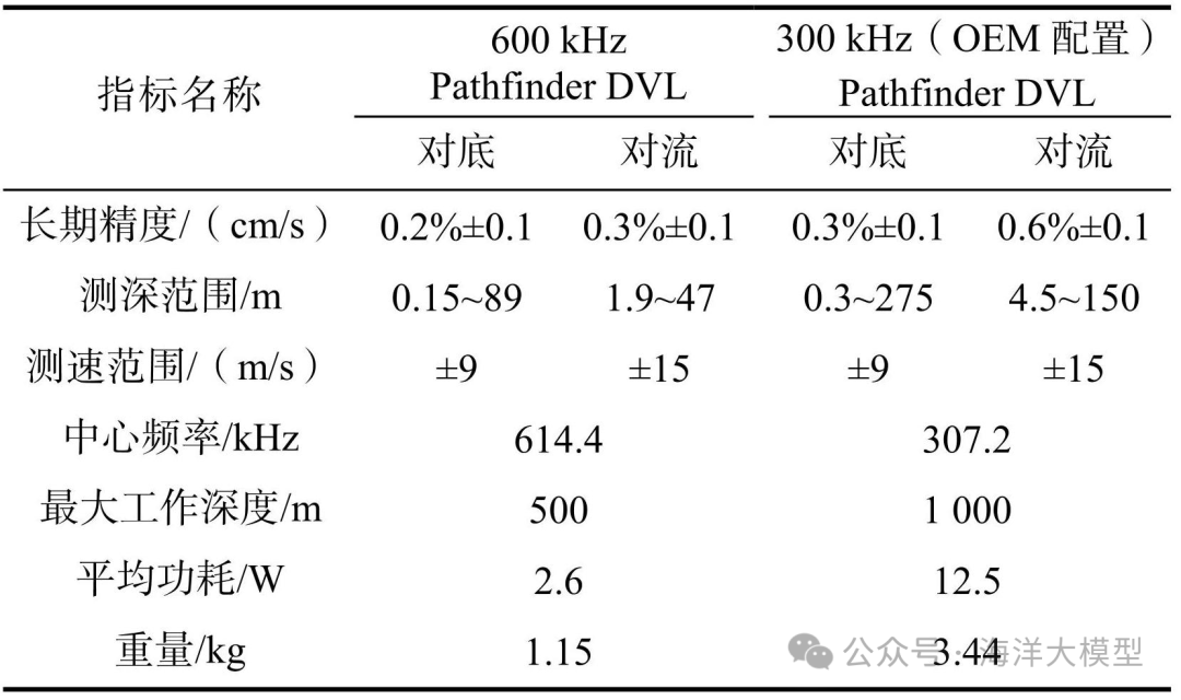7 g% k: i8 j7 [1 z1 _( M% v 表1 Pathfinder DVL典型技术参数表 % P, h3 N& O/ B0 L- {# O) W* Y- u