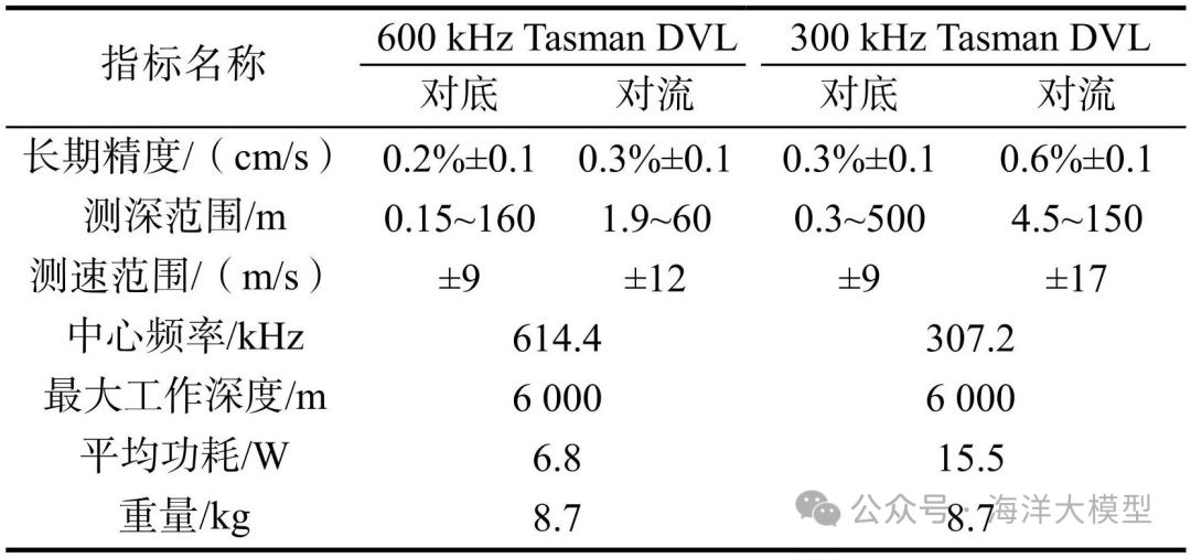 表2 Tasman DVL典型技术参数 & _5 q* L3 c6 R _& n
