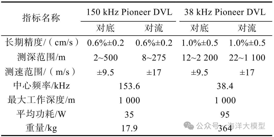 3 i& W4 [5 p" {, ^" ~ 表3 Pioneer DVL典型技术参数 4 d, ?9 ^/ [$ `" c( B3 Q" o