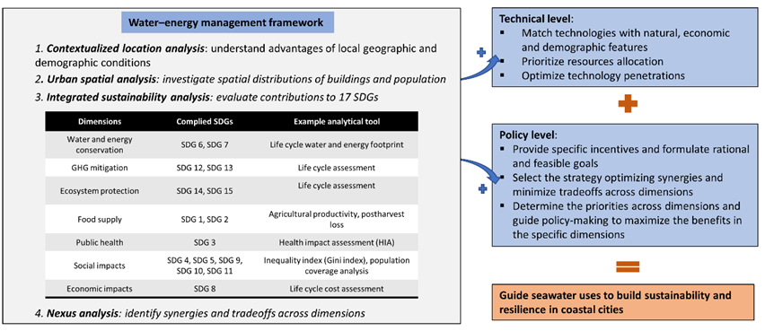 图1.可持续水–能管理框架以指导沿海城市引入海水,以增强城市可持续性发展和韧性 -来自原文