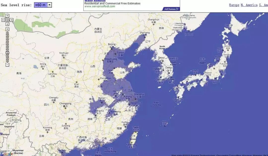 第一张地图显示了早些时候对2050年淹没陆地的预测。但新的前景,也就是第二张地图,表明该国的低处将在涨潮时被淹没。[考研题源报刊] ) ]% C4 N0 q! s, Y, m3 \3 X