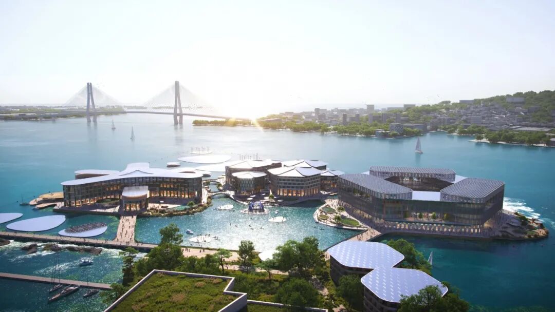 ' q5 Y( D0 {. v2 L) Q0 c. q( M “Oceanix City”野心优雅:目标是打造“世界上第一个可持续漂浮城市”。 ! z- X& r, Q8 I9 H