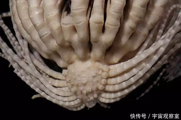 ; [: a7 C" c. q5 G$ {2 H 新发现的这个“海怪”其实就是海百合,科学家给它取了学名——南极草莓海百合,但是你会发现它与我们熟悉的海百合会有点不同。