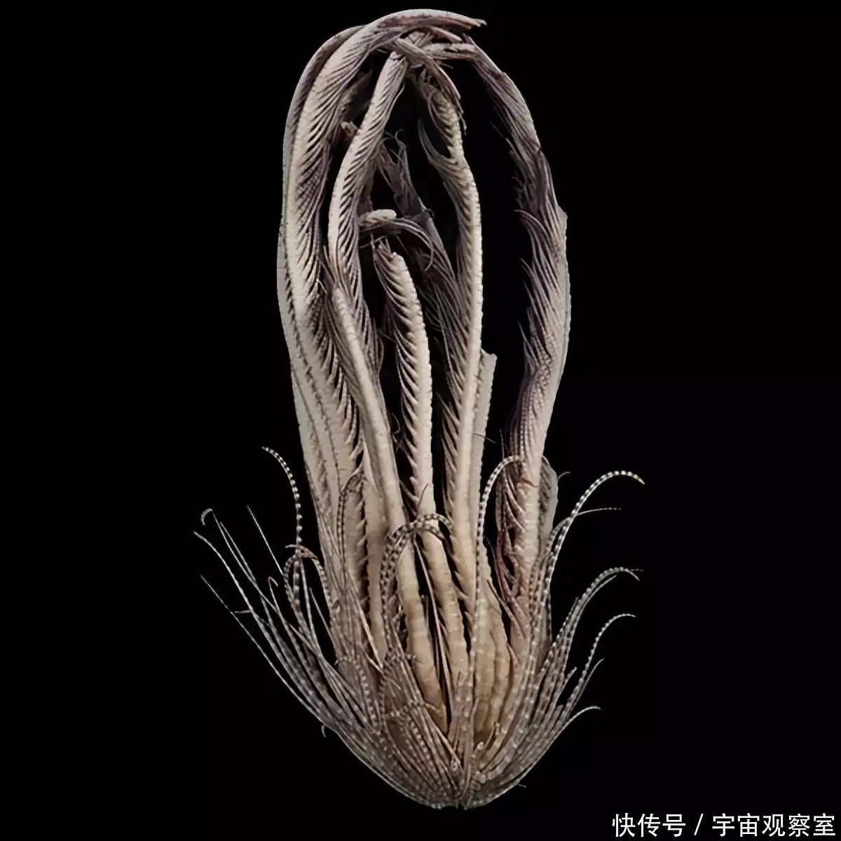 其实很简单,因为海百合有两种,一种就是这种有茎的,通常就是被叫作“海百合”,还有一种是没有茎的,就是这次发现的这种,被称作“羽毛星”。