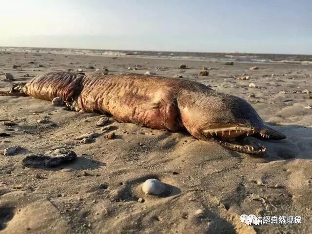 $ _2 p3 z' }0 q3 b" r3 l 据《触摸地球新闻网》报道,现在,越来越多的神秘海洋生物逐渐进入了人们的视野,去年在马来西亚海岸出现过一种奇异的“无眼鳗鱼”,最近在德克萨斯州的一个海滩上,科学爱好者Preeti Desai又发现了一个长满牙齿的奇怪海洋生物,并且它的身体正在慢慢腐烂。 # Z; c3 d* m0 A J
