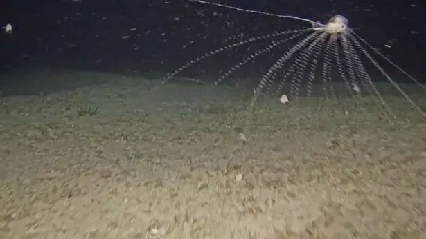 : b% R$ r7 I# t# S- b 趣味探索讯 这是个什么玩意,难道科学家又在海洋底部新发现了一种未知新动物,照片显示出一种类似动物的新物种在水下游动,外表看起来像八爪鱼,但比八爪鱼要瘦弱,因为触须比八爪鱼触角要细长得多。 1 g9 d& \8 P( z9 Y; f( j7 ~