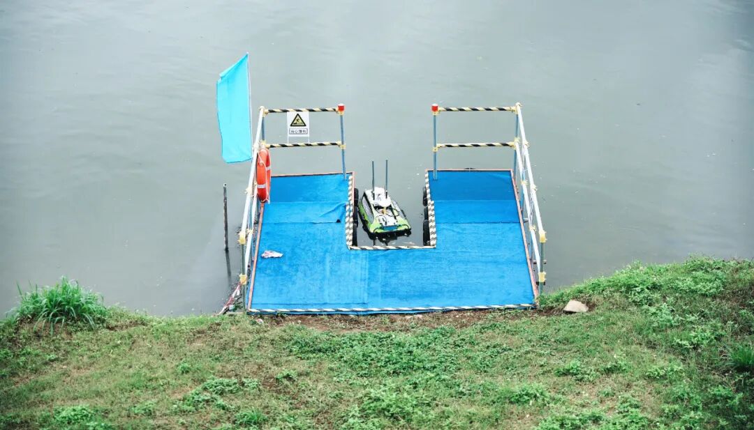 ▲参赛选手进行无人船测流操作