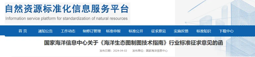 6 |3 m' S, ]! S8 S! c$ J 《海洋生态图制图技术标准》行业标准(计划项目编号:202220045)现已完成标准征求意见稿。根据《自然资源标准化管理办法》的有关规定,现公开征集各有关单位和专家的意见和建议,征求意见截止日期为2024年5月4日,逾期不回复,按无异议处理,感谢大力支持!