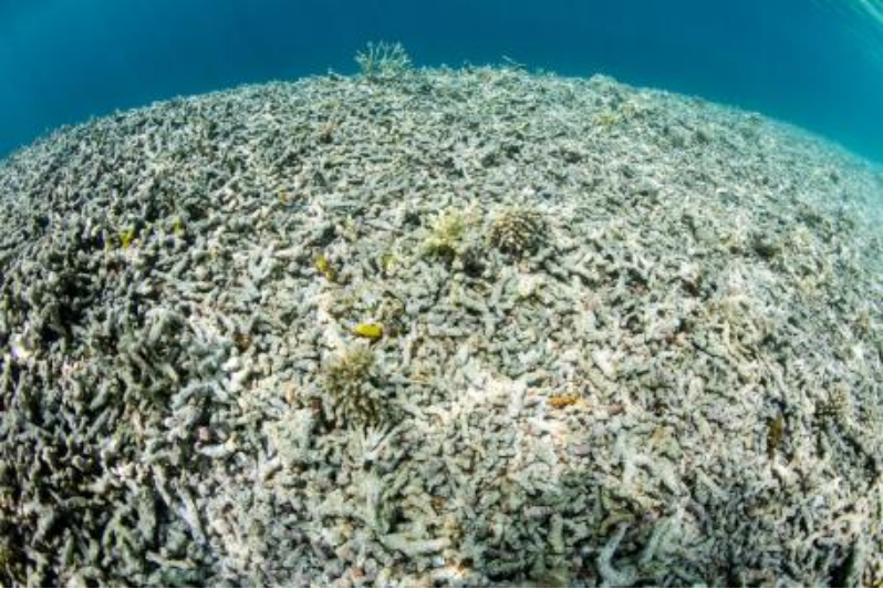 在印度尼西亚海岸附近的浅水区,珊瑚已经死亡,成为一片废墟。气候变化导致的气温升高意味着沿海社区珊瑚礁系统的死亡率增加。照片来源:Velvetfish/iStock ; W3 F4 n' x: l" L