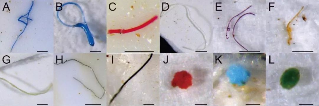 图2 马里亚纳海沟底层水体中的微塑料 & P7 o* {& T% t+ F5 L