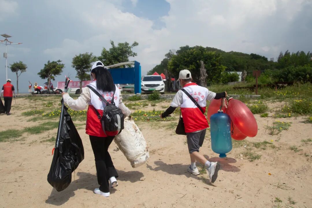 志愿者们将塑料袋、饮料瓶、废泡沫塑料等海滩垃圾拾起放入准备好的环保垃圾袋中。同时号召附近居民积极加入净滩行列,为保护海洋生态尽一份力,呼吁群众共同关心、支持海洋生态保护工作。