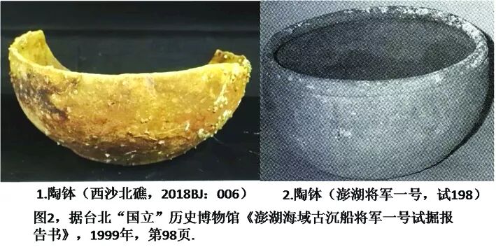 宋末元初标本2件。白釉瓷碗(2018BJ:004),通高6.9厘米,残存1/3,水深496米(图八:3);白釉瓷碗残片(2018BJ:005),残长8.3厘米,残宽7.1厘米,水深466米。这两件标本属福建德化窑产品,年代较华光礁I号、南海I号南宋沉船略晚,在中国南海海域乃至东南亚一带都有分布,是这一时期中国陶瓷外销的常见商品。
