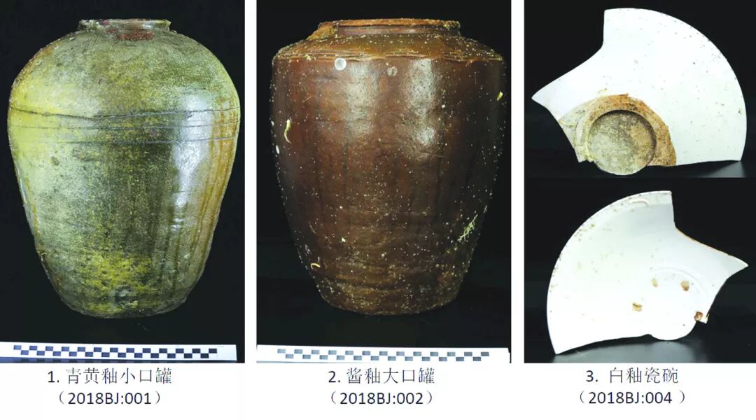 此次调查定点采集的6件器物标本的时代为宋末元初与清代中晚期这两个阶段,器型为罐、碗、钵。其中,编号为2018BJ:003的现代瓷碗编入工作档案,此处不赘。下文按时代顺序简要介绍。 * `( g! B0 N" i* L* I