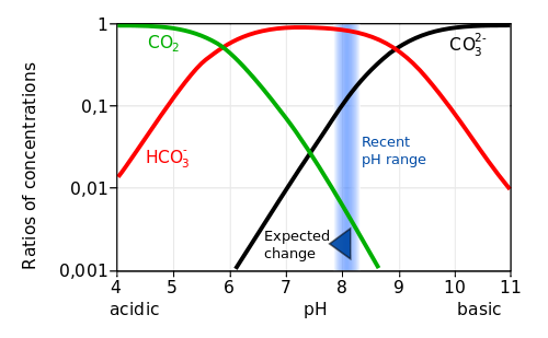 海水酸度对海洋中二氧化碳,碳酸氢根和碳酸根浓度的影响 - J* |; \: g: u% [& i% j