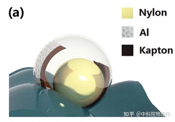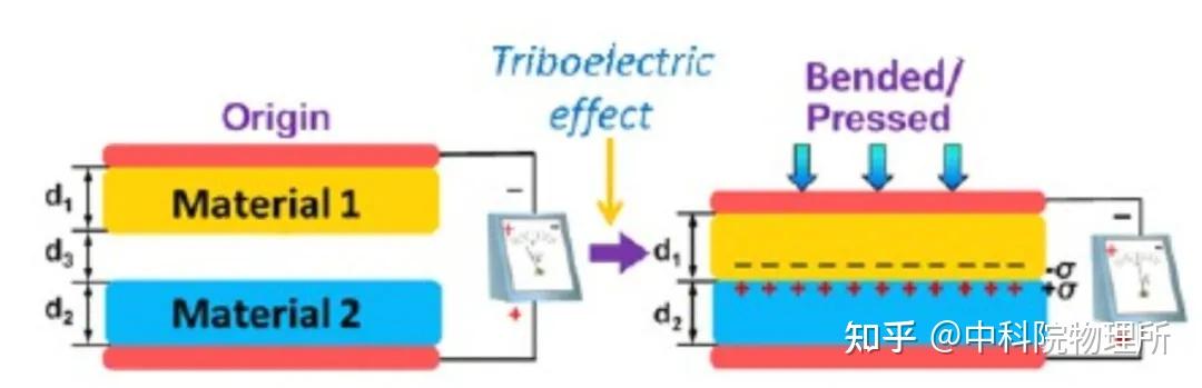 采用两种材料 (小黄和小蓝),当有外界压力导致两者被压在一起时,小黄会得到电子,小蓝失去电子。 ! W# F1 Z, {' W5 [8 \
