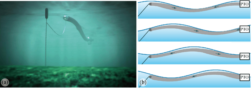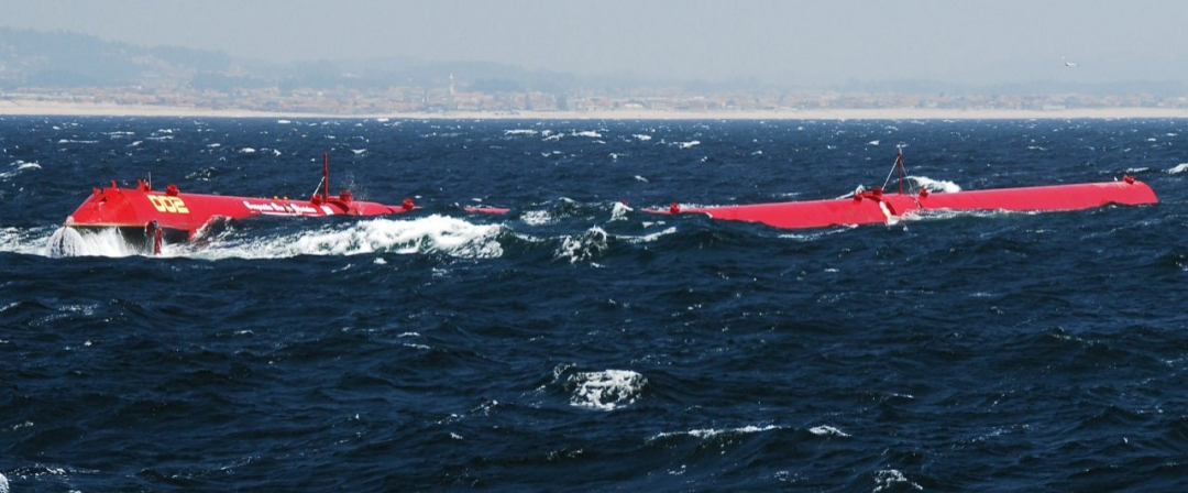 “衰减式”为漂浮在海面随波浪起伏运动的设备,当波浪通过时,相连的两浮体之间产生相对运动而撷取波浪能;代表装置是苏格兰研发的“海蛇(Pelamis)”,“海蛇”是全世界第一个利用离岸波浪能发电并输送到国家电网的装置,目前设置在葡萄牙的Agucadoura Wave Park。