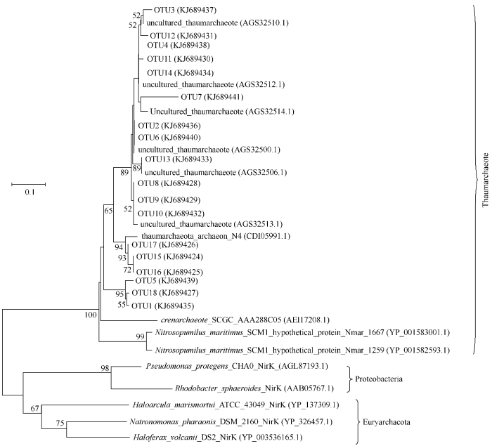 ' O6 A* p! i3 p5 i 奇古菌 nirK 基因系统发育树 | 微生物学报, 2015, 55(3) : 351-357 / j8 D$ t; |; E+ N+ Z' c