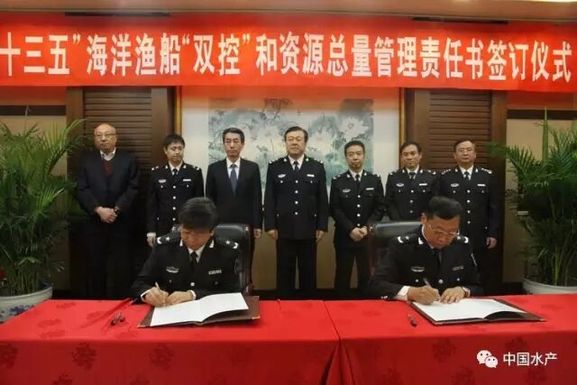 3月13日,“十三五”渔船管理“双控”和海洋渔业资源总量管理责任书签订仪式在农业部举行,由农业部分别与11个沿海省(区、市)签订责任书。农业部副部长于康震强调,这是贯彻落实国务院批准、农业部印发的《关于进一步加强国内渔船管控 实施海洋渔业资源总量管理的通知》(下称《通知》)精神,加强渔船和渔业资源管理的一项必要的措施,是海洋渔业资源管理向精细化、科学化迈进的一次重要探索。