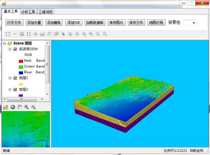一个完美的GIS三维系统,要求功能是多方面的,除了一些基本的GIS功能如图层放大、缩小、平移、数据导入、三维浏览、漫游、打开文件、保存文件等基本功能外,还需一些操作简单、布局视图直观的功能。文章基于测区真实的三维海底地理背景,开发出了多种系统功能,主要有二三维联动、地图识别、地层单元面积体积计算、三维动画三个比较有特色的系统功能。