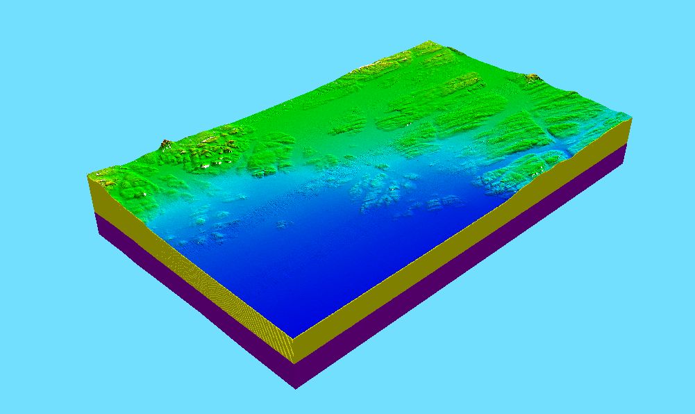 : Q& v4 s6 b- c9 l1 N 图3 水深DEM与地层叠加 $ @' R5 I6 m5 ~' ?3 d