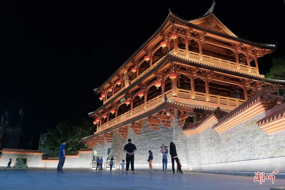 潮州镇海楼。夜幕降临,在古城北部,华灯初上的潮州镇海楼熠熠生辉,激光投影秀带领市民游客“穿越”千年时空。去年年底顺利完成复建的镇海楼(旧府衙)巍然耸立,吸引不少游客前来打卡拍照。未来与之交相辉映的还有已于2022年7月动工的百花台民俗文化综合体项目。这里也是古代潮州府衙所在地,根据规划,该项目将建设城隍民俗文化馆、古城旅游集散中心、商业街区、民宿、百花台景观等,成为有民俗文化印记、有旅游集散功能、有商业消费业态的文商旅综合体。作为潮州“百家修百厝(祠)”重点项目之一,始建于清代的廖厝祠同样正加快修缮,力求最大程度保留原貌。曾为海阳县县治、廖氏家族祠堂,是潮汕地区祠堂与宅第同时布局营建的代表作。