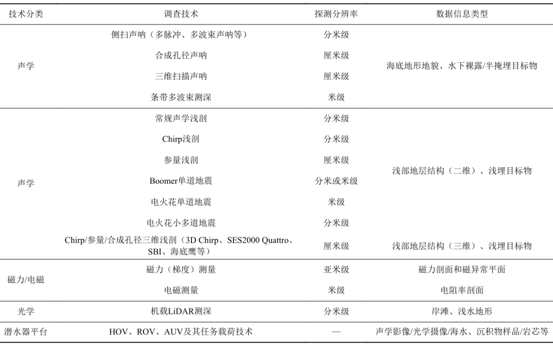 表2 水下考古主要地球物理技术及其数据信息类型
