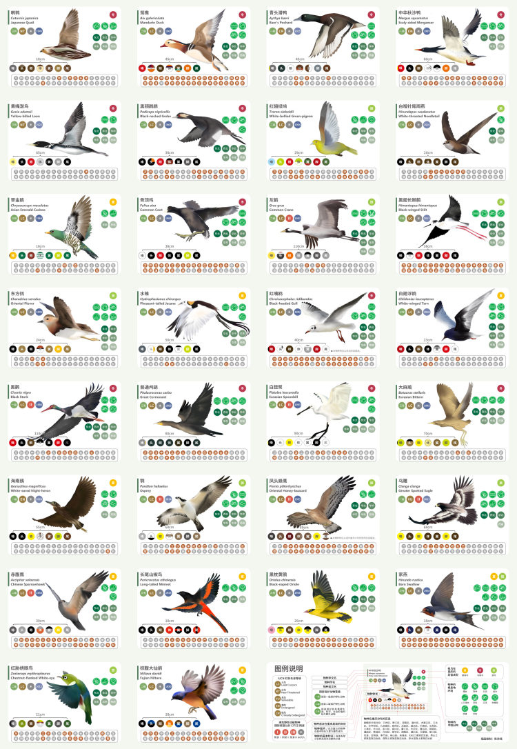 2 ~ b0 i! v2 G 这些“档案”中包括鸟的类型、识别特征、栖息地环境、保护级别、分布区域等信息,以普及候鸟迁徙科学知识。在六大鸟类生态类群中,鸣禽和攀禽是重庆夏候鸟的主力军,属于水鸟的游禽和涉禽则组成了重庆冬候鸟的主力;猛禽和陆禽则在重庆更多为迁徙过境的旅鸟。 6 {3 d" D; J! P3 P