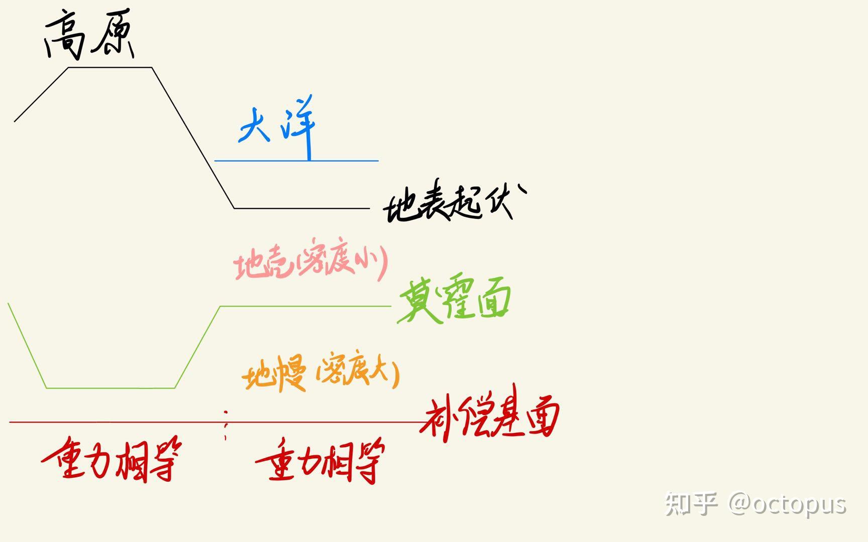 iPad写字手感很奇怪,凑合看叭。。而大洋虽然地壳薄,但莫霍面浅,补偿基面以上密度较大的地幔比较多;