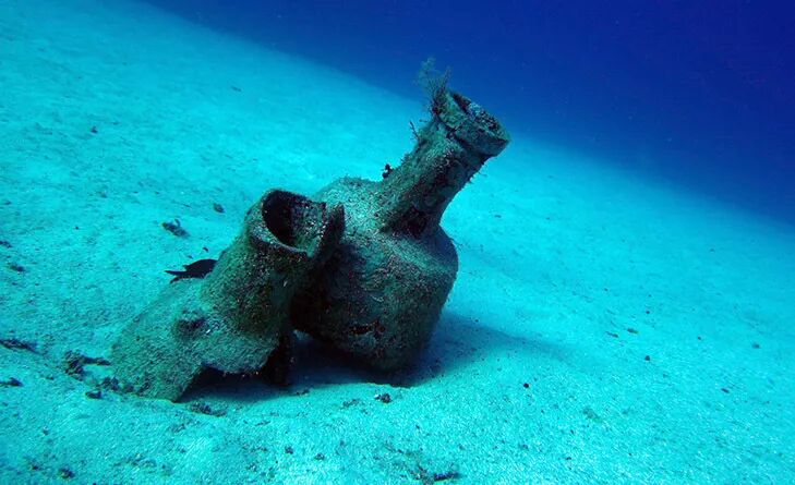 顾名思义,这个景点名字来源于破碎的古董双耳瓶(一种古老的陶瓷容器,用于运输和储存各种产品。)这是一个具有考古重要性的绝佳地点,有许多洞穴值得去探索,其中包括一个在屋顶上镶嵌着双耳瓶。 根据调查该遗址的一组美国考古学家的说法,他们相信这是由于过去两千年来海床的运动造成的。潜水进入5米至12米的深度,可以清楚地探索洞穴和沟壑。