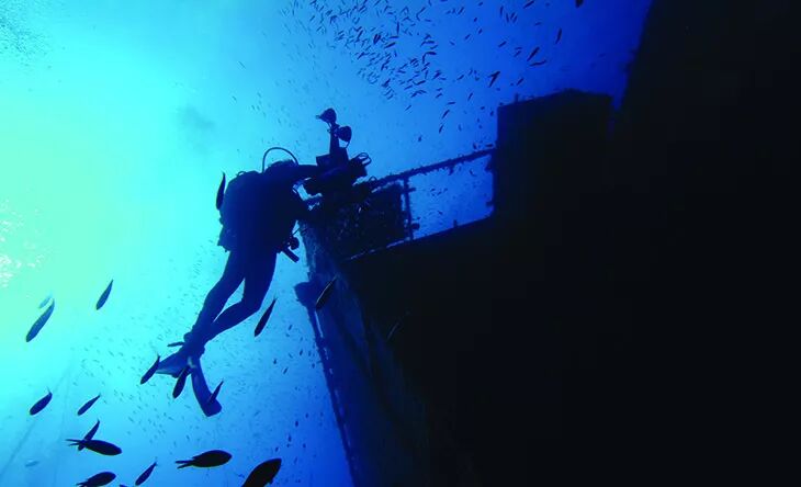渡轮及其货物仍然完好无损,从大型螺旋桨到船上的自助餐厅都很有探索价值。 沉船也成为了海底鱼类的家园:好好观察围绕在周边的鱼群,其中有石斑鱼、梭鱼和金枪鱼。 潜水最深的地方为43米,最开始是17米,资深潜水爱好者,一定要来感受一次了。 . S( X7 E/ d9 @/ T9 ?