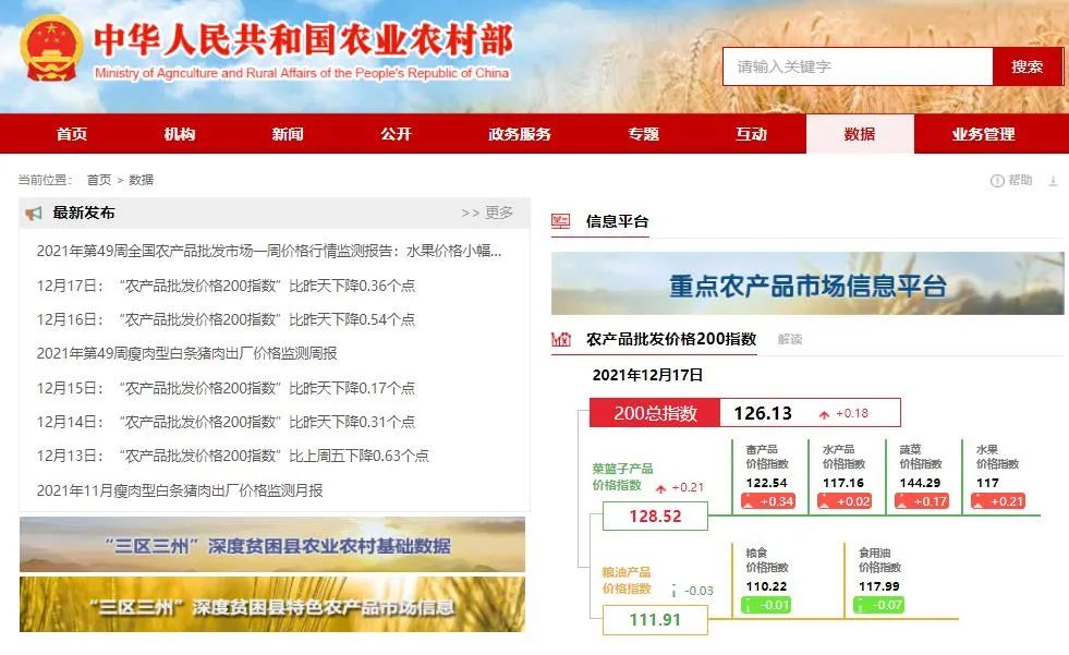 9 z! F) ?, ]+ P5 ]- t+ Q+ n 中国农业数据(农业农村部) 2 X& L3 B/ O1 Q2 J