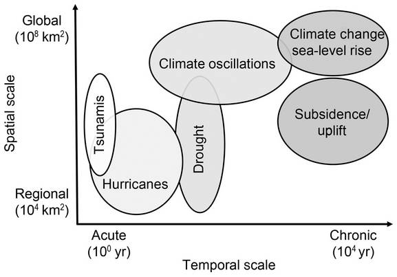 4 r5 C. W+ |8 }- p5 _" j" k* p# Z5 g* B 海水入侵的自然环境驱动因素包括:风暴、飓风、气候周期、海平面上升和地面下沉等。