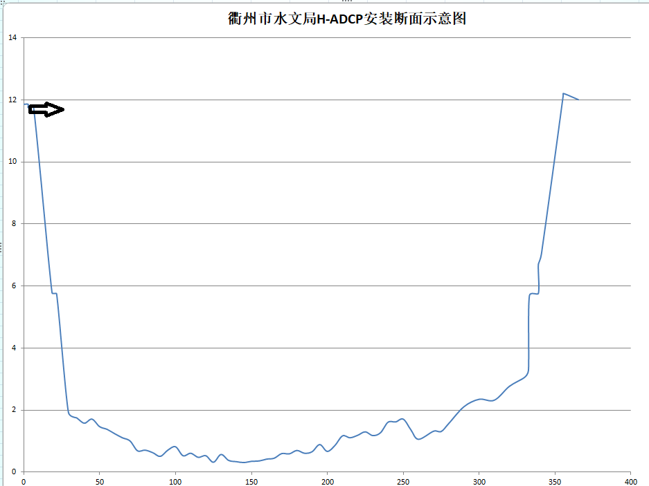 4 p3 w) V+ B }/ M$ n/ w( B ▲箭头处为安装断面H-ADCP位置