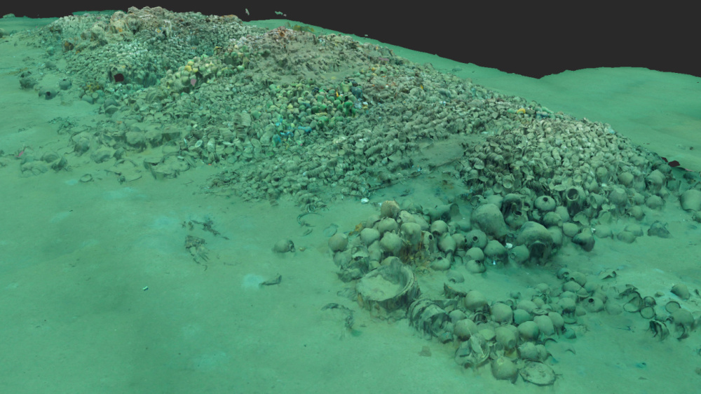 南海西北陆坡一号、二号沉船遗址位于海南省三亚市东南约150公里海域。2023年5月至6月、9月至10月,国家文物局考古研究中心、中国科学院深海科学与工程研究所、中国(海南)南海博物馆联合对两处沉船遗址进行了两个阶段的深海考古调查。通过海洋物理探测和载人潜水器水下调查相结合的方法,确认了两处沉船的分布范围和遗物分布情况,并对两处沉船进行了三维摄影拼接及激光扫描等资料记录工作。
