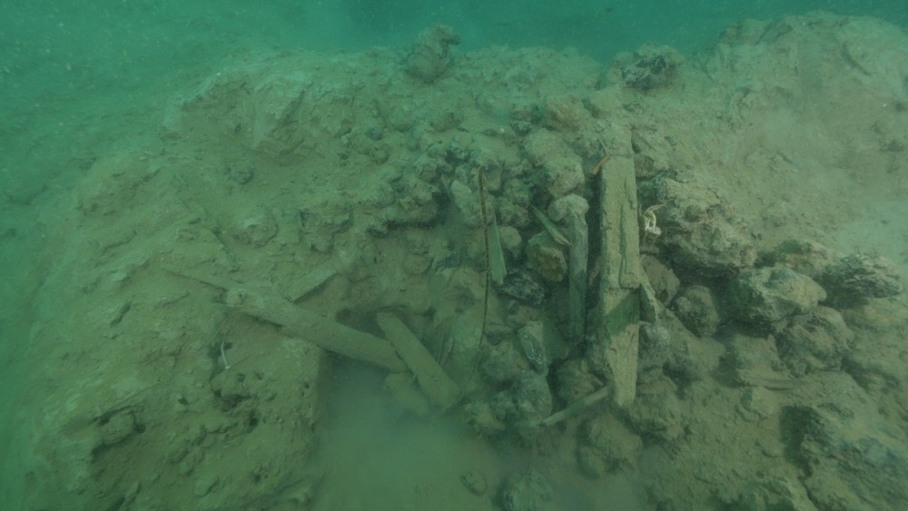 南海西北陆坡二号沉船遗址所处水深约1500米,主要发现大量排列整齐、码放有序的原木堆积,南北长约21米,东西最宽约8米。目前已提取出水原木、瓷器、陶器、蝾螺壳、鹿角等遗物30余件,沉船年代大致为明代弘治年间(1488年—1505年),推测是从马六甲等贸易中转站运载乌木等货物后返航中国的民间商船。