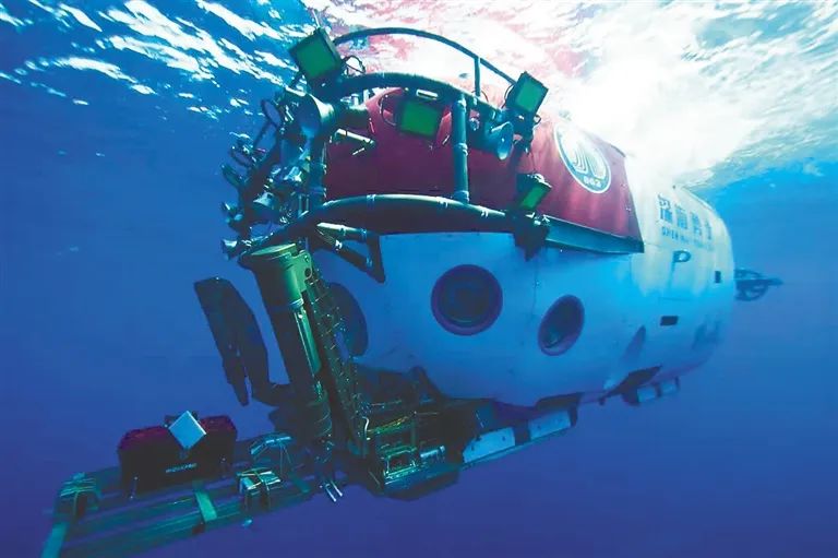 “深海勇士”号4500米级载人潜水器。(国家文物局供图)考古周期将完成七大任务 : R; q" A: j, G% Q- }% k