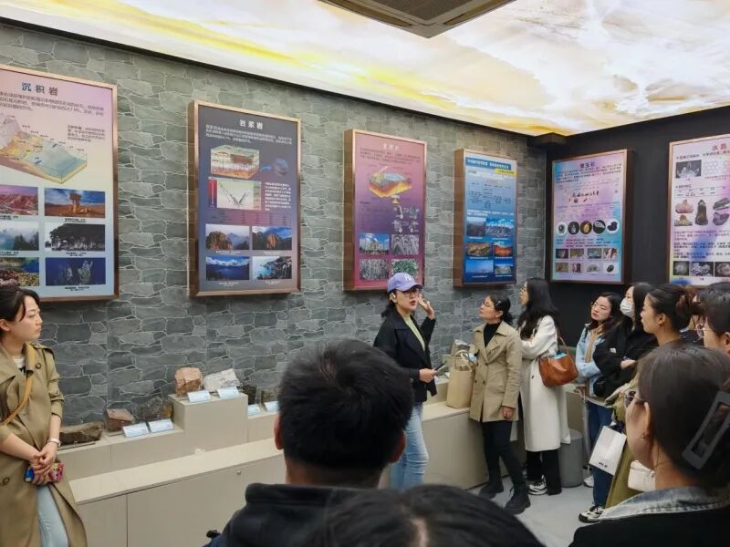 培训活动分为海洋地质科技馆参观和海洋地质专题讲座两部分。在海洋地质科技馆参观环节,耿威副研究员带领参训教师们在科技馆进行了实地场景培训。培训从宇宙大爆炸开始,介绍了宇宙、太阳系以及地球的演化过程,了解了地球的前世今生,讲述了地球历史以及取得的重大科学进展。随后介绍了三大岩石的分类及成因,观察了不同类别的岩石标本。最后介绍了海洋生物、海洋探测、海洋资源、海洋环境等知识,围绕中国海的沙盘介绍了海底地形地貌和海洋权益。 7 C9 E; F$ \: ^" t* s