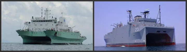 使用的,用来监听他国潜艇动态的一类调查船。美国海军拥有5艘这一类的船只,其中4艘为“胜利”