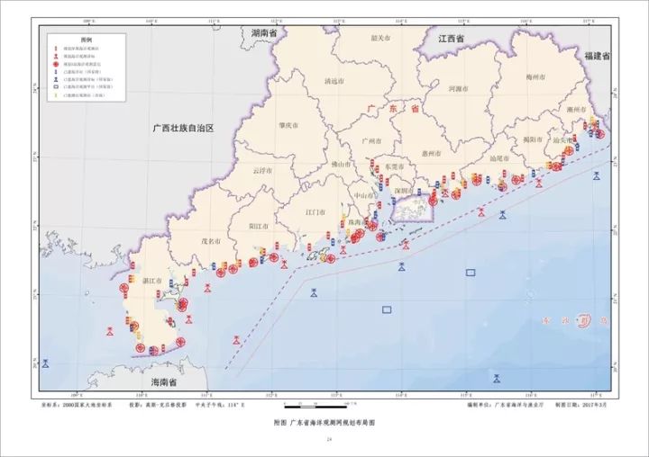 # a/ [5 P! Z, g# {$ F W( a 《规划》明确提出了广东海洋观测网的建设目标,是完善广东省海洋立体观测网建设规划,建设岸基、海基、空基、天基“四位一体”的综合性立体观测网,“到2020 年,广东省初步建成以岸基观测为主,浮标、卫星遥感、航空遥感和应急机动观测为辅,布局较合理、结构较完善、功能较齐备的海洋观测网,初步建立海洋观测网综合保障体系和多部门的数据资源共享机制,有效提升海洋观测网运行管理与服务水平,基本满足海洋防灾减灾、海洋经济发展、海洋综合管理、海洋环境保护、海洋权益维护等方面的需求。”