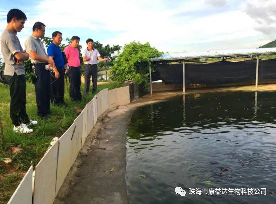 6 r; F/ u& ^# k% g' N 座谈会后,严副局长和罗副局长等领导在康益达董燕声董事长与车绮玲总经理的陪同下,参观康益达百亩水产生态健康养殖综合试验示范基地(120多亩)。