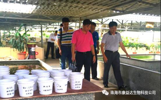 在参观过程中,董博士介绍了该研究中心应用生物技术养龟所取得的成功经验,并重点介绍了康益达的发明专利技术:“一种省工节水的养龟新技术”的应用效果。董博士说:传统养龟法不仅要天天换水,而且龟不易养好,易发生水霉病、腐皮病及咬尾等病症;但应用该技术,一年只清理和换洗龟池4-5次即可,既“省工节水,又能把龟养得更好”,同时不污染环境和影响周围人居。严副局长等领导听后,并看到龟场内各品种和年龄的龟健康活泼,且龟池内水质翠绿、若大的龟场内空气清新和见不到蚊子、苍蝇滋生时,都认为这种节约型、环保型、健康型与和谐型的养龟新技术,很值得推广、应用!