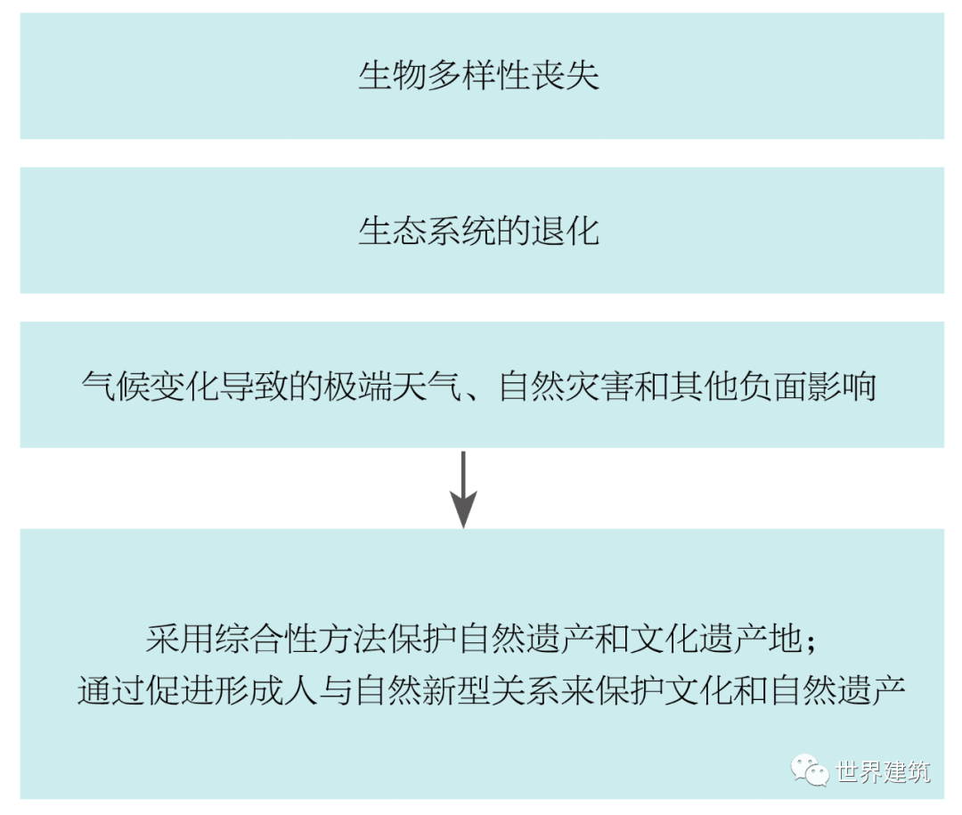 第三,实现可持续发展。党的十八大提出全面推进经济建设、政治建设、文化建设、社会建设、生态文明建设,实现以人为本、全面协调可持续的科学发展,明确了中国特色社会主义事业“五位一体”的总体布局,同时也为可持续发展提供了中国的行动框架。文化和生态的结合在文化遗产保护工作中尤为重要。2021年7月,第44届世界遗产大会通过《福州宣言》(图1),重申须秉持人类命运与共的理念,加强在环境、经济、促进公正、和平和建设包容性社会等可持续发展不同领域的全球合作,将其与文化和自然遗产保护有机融合;强调要关注由于生物多样性丧失、生态系统退化、气候变化导致的负面影响,采取综合性的方法保护自然遗产和文化遗产地,促进形成人与自然新型关系来保护文化和自然遗产。