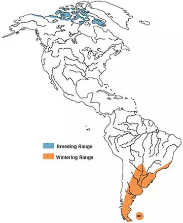 白腰滨鹬繁殖在加拿大和阿拉斯加的苔原地带,而越冬地在南美洲南部。 7 A( h" a7 c! ]% B6 u