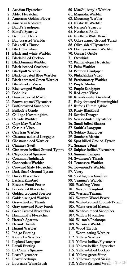 这是118种鸟类各自的迁徙路线,以及这118种鸟类的名单。