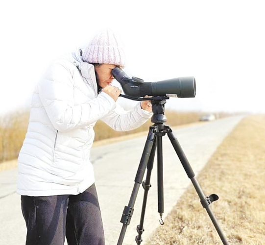 △1月9日,省野保站专家在蔡甸沉湖湿地公园监测候鸟活动。